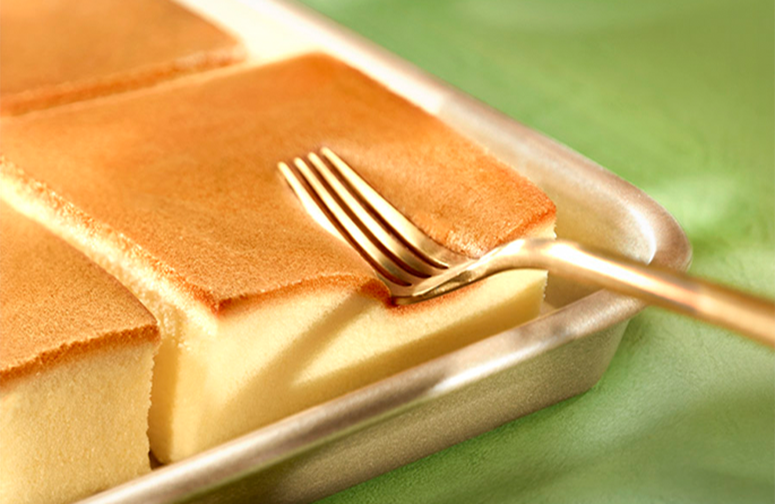 醇香干酪粉和10%黃油融合后 經(jīng)歷水浴慢烤,蛋糕綿軟如云